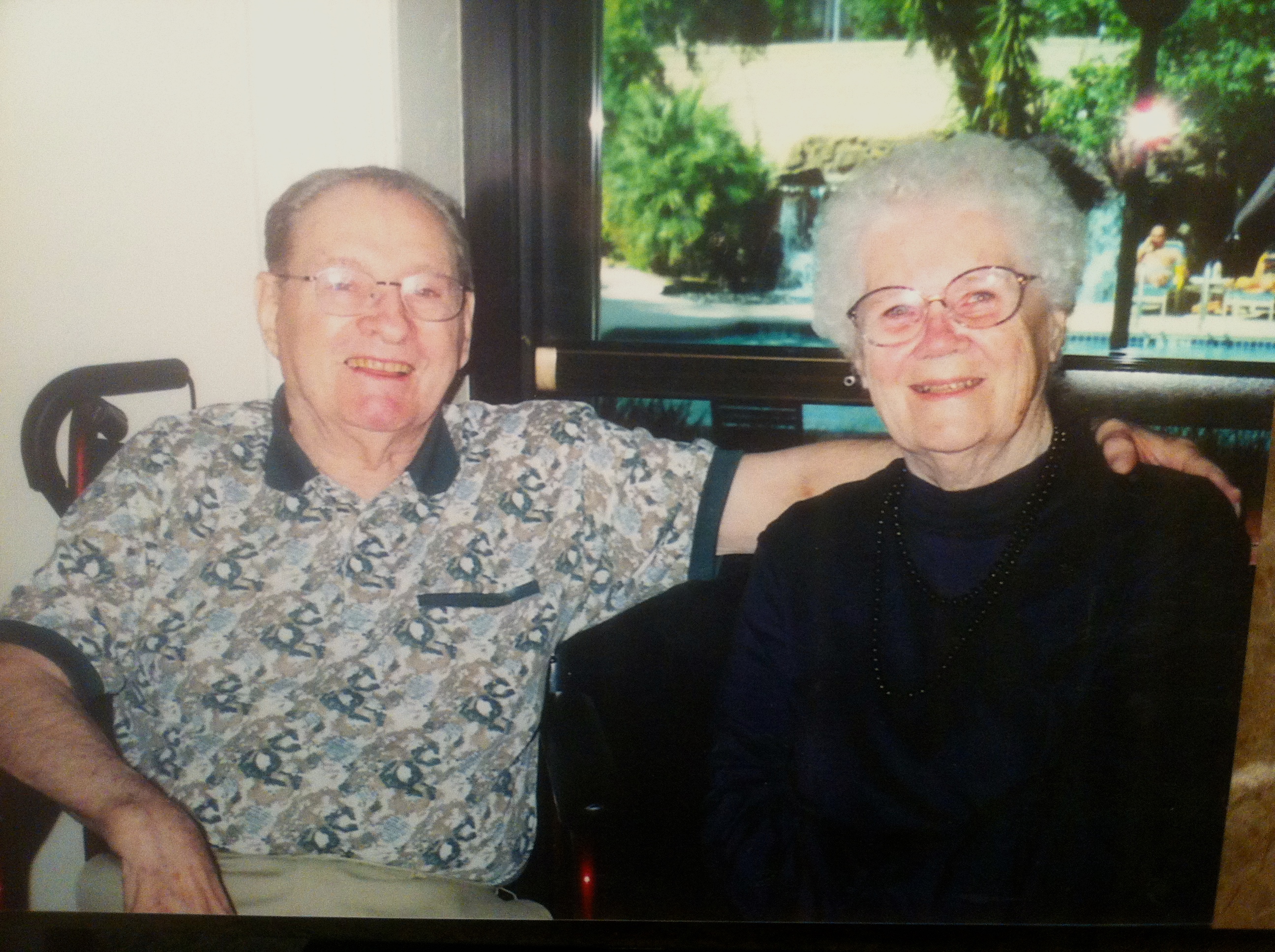 This first picture is a picture of Aunt Ruth and her youngest brother, Reuben, my father. This was taken in 2003, at the memorial of their older brother, Harry. Both Ruth and Reuben look very happy.