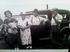 This third photo is one taken of Ruth, Reuben, and their parents standing next to a car. A few years ago, on a visit to California, I asked Aunt Ruth to tell me the story behind this picture. She told me she had finished one year at Tabor College (a Mennonite Brethren college) in Hillsboro, Kansas, receiving her teachers certificate, and was returning to Hillsboro to teach school. This job was at a rural, one-room school about five miles outside Hillsboro. “That year was a disaster,” Ruth told me. “I couldn’t control those boys.”
